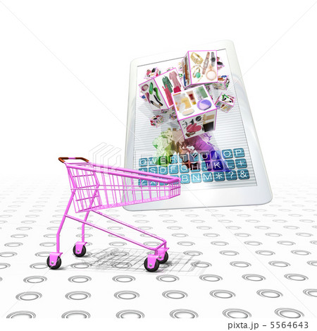 Pcインターネット通販で買い物かごに入れるのイラスト素材